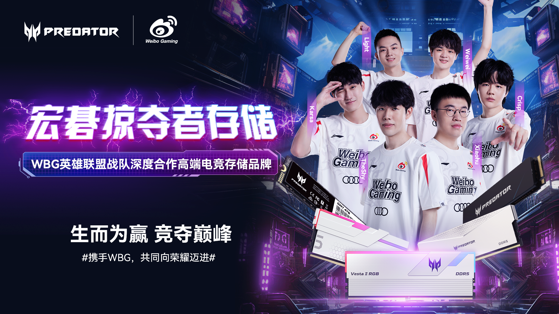 近日,佰維存儲運營品牌——宏碁掠奪者存儲正式官宣與WBG英雄聯(lián)盟戰(zhàn)隊達(dá)成深度合作,將以WBG英雄聯(lián)盟戰(zhàn)隊深度合作伙伴的身份,和TheShy、Xiaohu、Crisp等明星戰(zhàn)隊成員一起邁向榮耀,共奪巔峰。